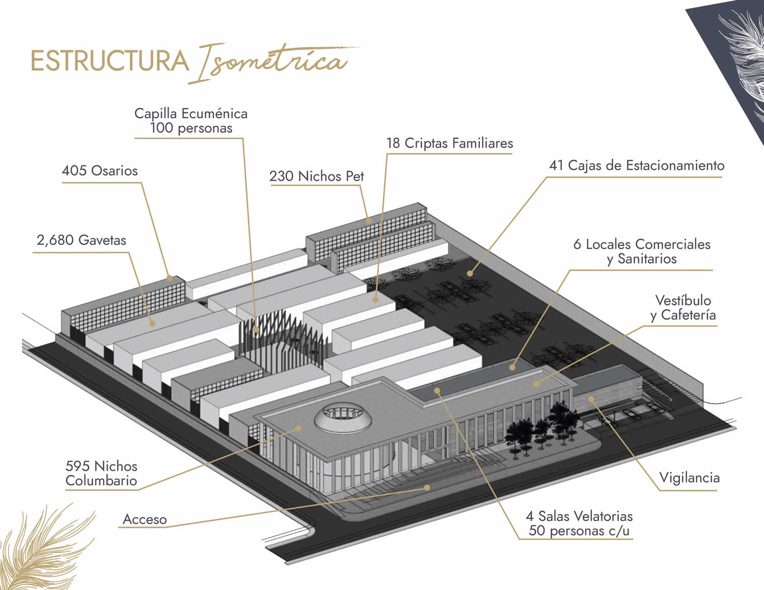 Con la intención de abatir el déficit por la saturación de los panteones actuales, se propone la construcción de un panteón vertical que genere una mayor densidad de ocupación y ofrezca una opción práctica, compacta y eficiente con un servicio amable y cálido.